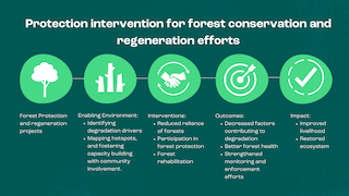 The Mau Forest, the heart of Kenya’s ecosystem, faces serious threats from encroachment, overgrazing, unsustainable wood extraction, fires, and poaching. In recent decades, more than 25% of the forest has either been cut down or degraded, putting tea production, other sectors and community livelihoods at risk. This is caused by growing populations, unsustainable livestock grazing, charcoal burning and timber extraction from the forest.