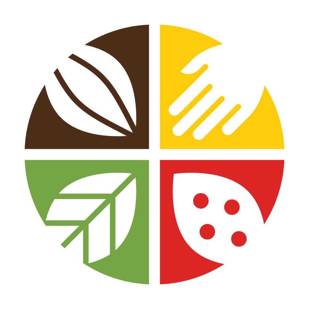 Rationale of logo design: The logo represents the 4 different elements of cocoa production. The raw fruit, an opened pod with cocoa beans, a farmer’s hand and a leaf to represent the forest and livelihoods. They are equally positioned to convey the importance of a sustainable production cycle. The colors of the Belgian flag are used to keep strong the national identity of the platform.